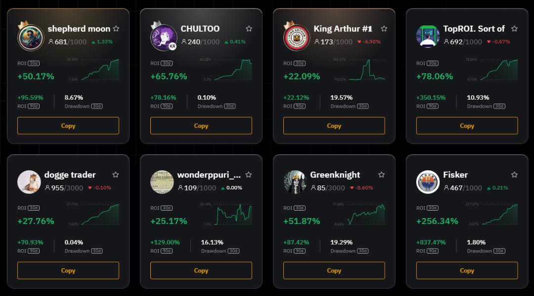 바이비트는 세계적으로 유명하고 실력 있는 전문 트레이더들의 매매법을 그대로 복사하여 투자할 수 있는 바이비트 카피 트레이딩 서비스도 제공하고 있기 때문에, 초보자들도 수익실현 할 가능성이 높습니다.