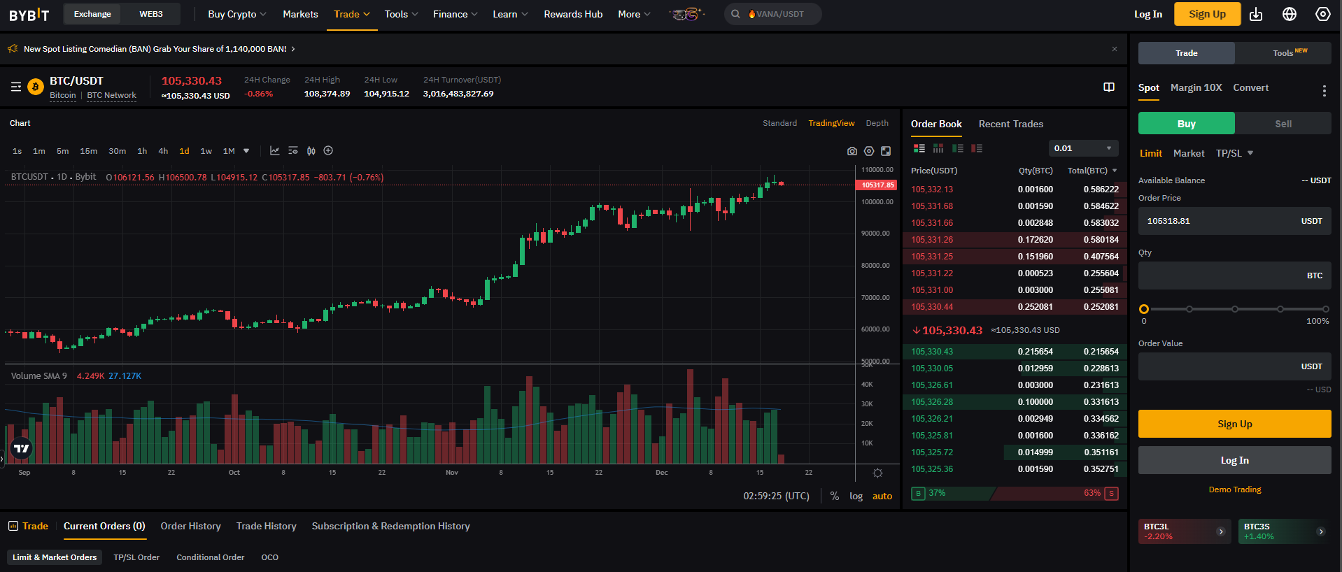 바이비트는 바이낸스, 비트겟 거래소와 함께 세계 1위 선물거래소 입니다. 강력한 트레이딩 엔진과 사용자 친화적인 인터페이스로 세계적으로 가장 많은 트레이더들이 이용하는 거래소 중 하나입니다.