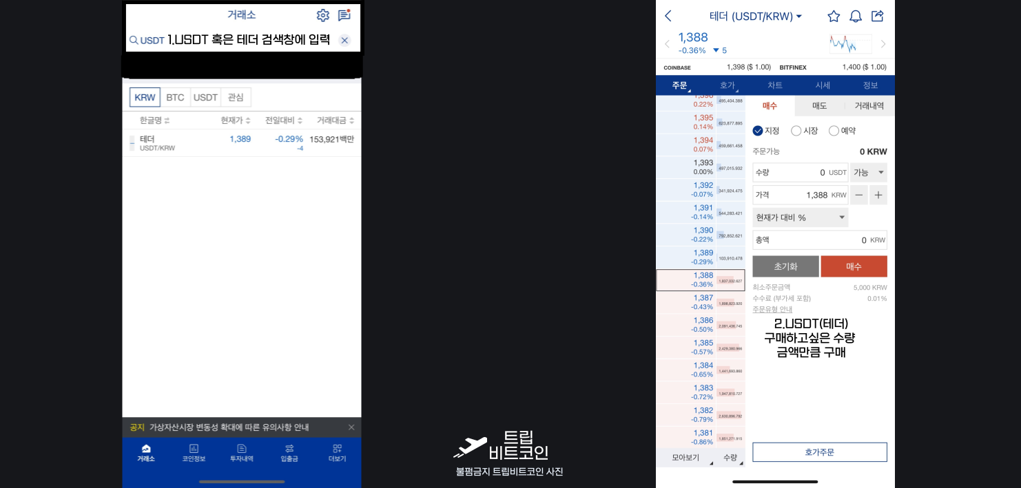 물론 테더가 달러 기반 코인이라 그렇게 큰 변동성은 없지만 혹시라도 손실이 날 수 있기에 조심!