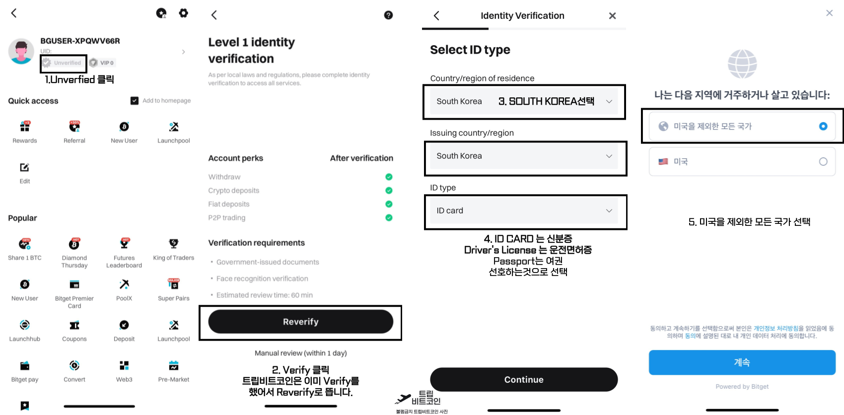2.Verify 클릭 (트립비트코인은 이미 verify를 완료해서 Reverify로 뜨는것 입니다.)