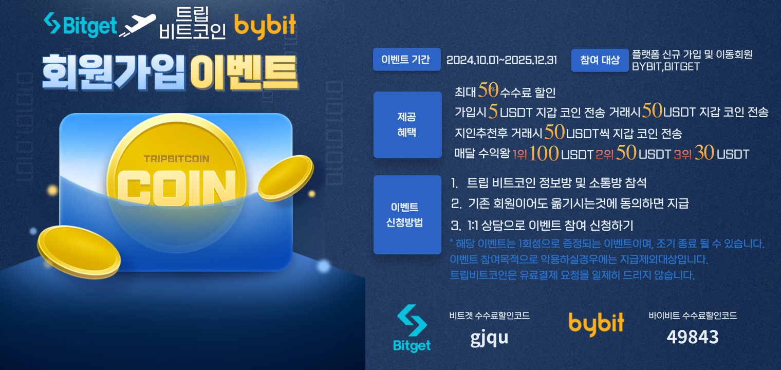 | 바이비트 수수료 할인받고 거래하자, 거래시 50usdt 에어드랍 이벤트 (42) | 2024.12.04 |
