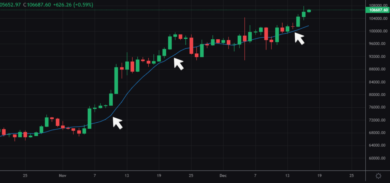 이동평균선은 20일 또는 50일과 같은 특정 기간 동안의 자산 가격 평균을 나타내어 계산됩니다.